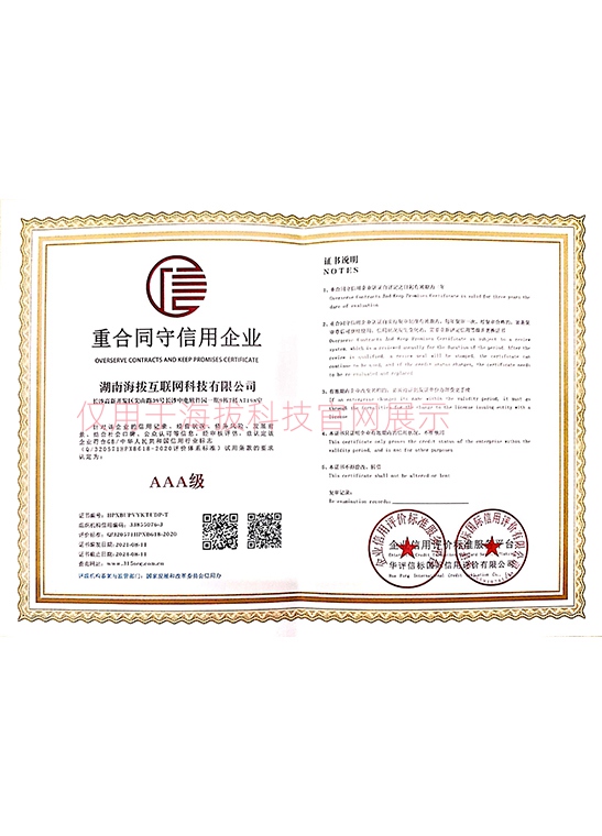 标签:重合同,守信用,企业,认证,湖南,海拔,互联网,