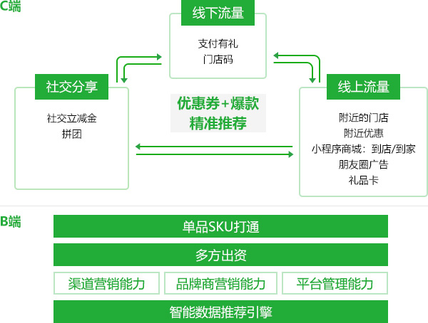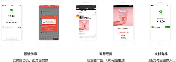 将微信支付平台中丰富多样的券体系,和门店外的流量做结合,为商家提供更丰富的场景做发券选择,将用户精细化运营落实到门店。
