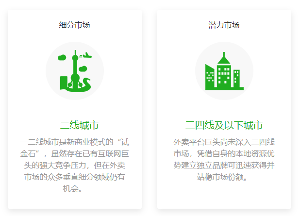 线上外卖市场作为刚性需求,急需通过一二线城市的成功模式向更多类型市场蔓延。餐饮外卖系统的整套解决方案让你不再错失外卖o2o的创业机会。