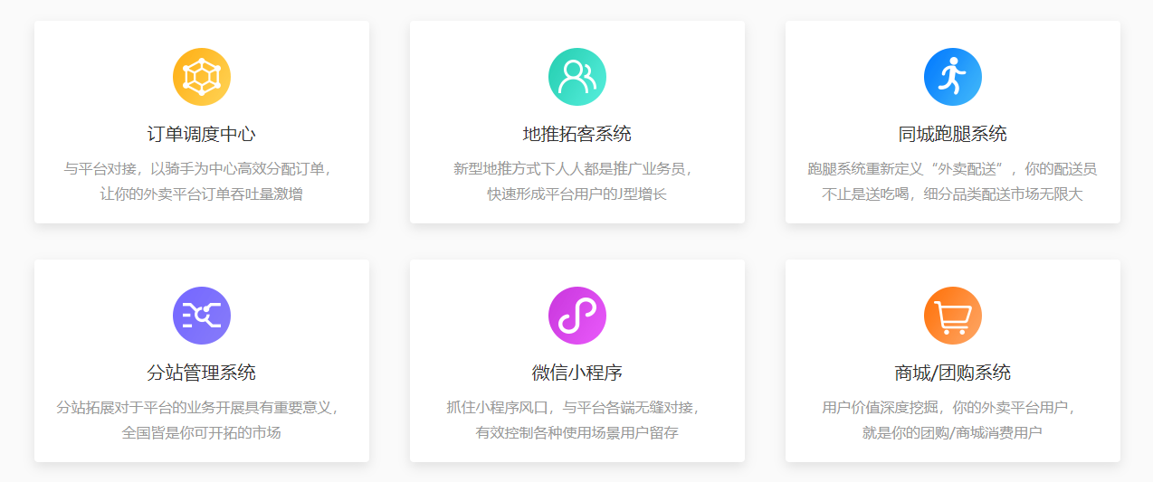 调度中心、分站管理等增值功能。运营者可通过该系统快速建立自有品牌外卖平台,是你的O2O创业利器!