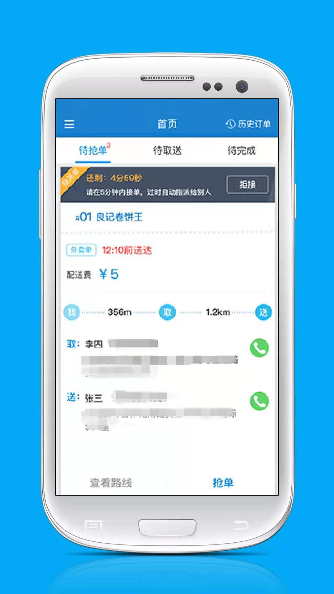骑手通过app可快速抢单,掌