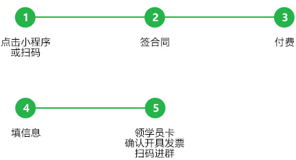 只需创建一个班型信息,分别从小程序或公众号商城关联商品,或建立线下二维码,扫码或者点击小程序或公众号的课程,所有报名流程全部包含。
