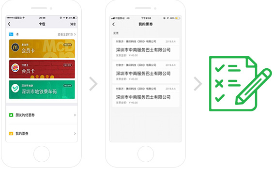 直接进入微信卡包-我的票据