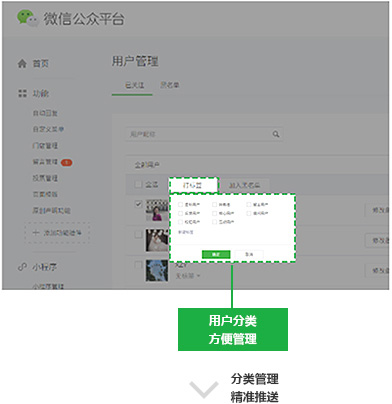 用户分类标签管理:根据用户的购买产品、关注内容进行标签分类。