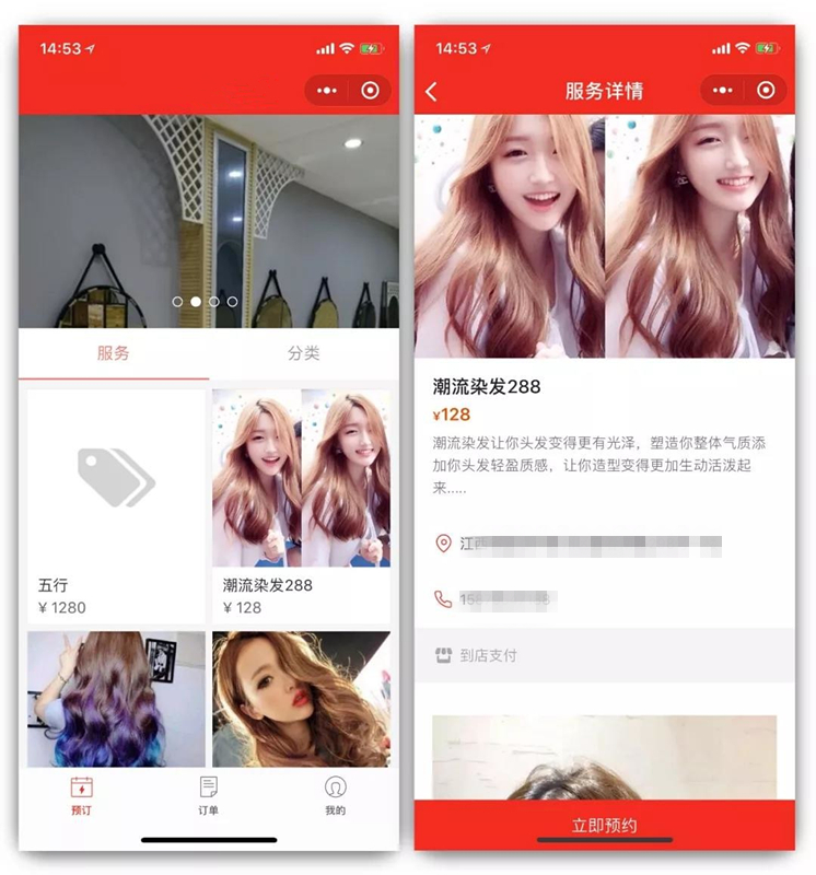 这个功能对于美发企业来说是比较核心的功能,在线预约功能使用户无需主动联系商家,只需动动手指就能方便快速地完成整个预约过程,可大大提升用户体验,为口碑营销打下基础。同时也帮助美发企业进行内部管理,使服务体验与自身效率双双提升。