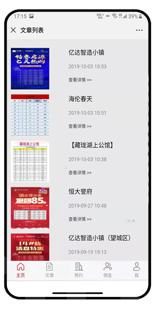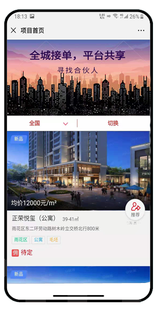 理念:地产圈战火纷飞、乱象频出,媒体、代理、中介房地产产业链上的各个环节都在寻找着突破与创新,同时也遭受到传统的束缚与抵制。地产圈急需寻找新的营销模式,而以人为中心,以人为渠道,通过人的社会关系,发挥波纹效应的营销模式就很适合。模式:分享经济的一个模式,房产商出高价佣金让所有人都可以帮他推荐买房客户,一旦推荐的客户成交了,这个推荐的人就能得到约定的佣金。功能:经纪人管理、客户管理、客户池管理、佣金管理、客户画像管理、楼盘管理、经纪公司管理、数据报表统计、跟进状态管理、文章管理等。