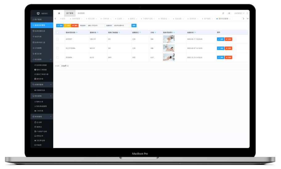技师、消费者、财务、订单信息,都能一键归结整理,多维度数据分析管理,让商家清楚看到自己的经营状况,更好的进行下一阶段的经营安排。